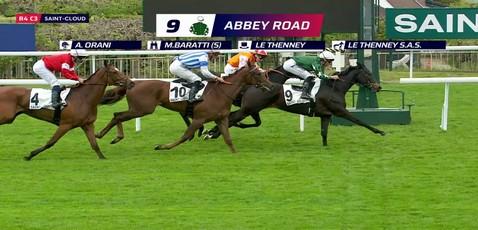 Antonio Orani bravo anche sul piano tattico oggi trova un varco in sella a Abbey Road e dunque anche fortunato, per linee interne e con uno scatto bruciante supera nel finale Fire Fly e Marbellesa. La vincitrice alla seconda uscita in carriera e trainer Mario Baratti prevale nella maiden sui 1400 metri e dotazione 24.700 euro a Saint Cloud.