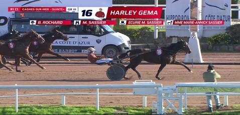 Pochi metri dal traguardo e Alessandro Gocciadoro stava per siglare a distanza di 24 ore un secondo “gruppo” dall'Italia, ieri a Bologna con Ek del Ronco nel G.P. Della Vittoria, oggi in Francia con Free Time Jepson nel prix de la Cote d'Azur. Traguardo ormai vicino per il portacolori della scuderia Chelsea, quando dall'esterno arriva a velocità doppia Harley Gema, lanciata da Benjamin Rocgoard e supera Free Time Jepson, con vicino anche Imperator d'Ela, e sfuma una vittoria quasi raggiunta. Vicino al quinto posto Colbert Wf.